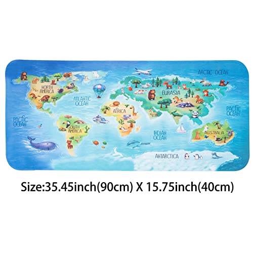 BEEHOMEE Tappetini da bagno per vasca da bagno - grande cartone animato antiscivolo tappetino da doccia antiscivolo per pavimenti 89 x 40 cm, lavabili in lavatrice XL dimensioni (mappa)