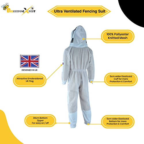BEEKEEPING XPERT- Tuta Apicoltore a Tre Strati Ultra Ventilata per Uomo e Donna con velo da scherma, Tuta Professionale Anti-Puntura per Apicoltori, Tessuto Polycotton Bianco premio Tuta da ape(Small)
