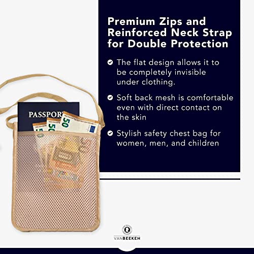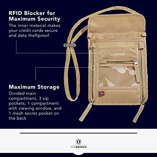 Van Beeken - Borsa per passaporto da appendere - Tasca sul petto con blocco RFID - 16 x 20 cm, beige., L, Tasca sul petto