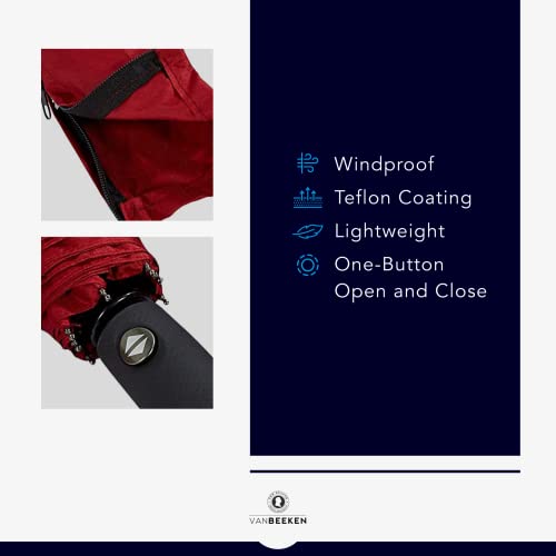 Van Beeken - Ombrello tascabile - ombrello automatico resistente alle tempeste e antivento, Colore: rosso, Taglia unica