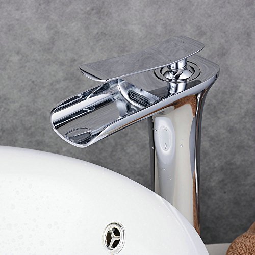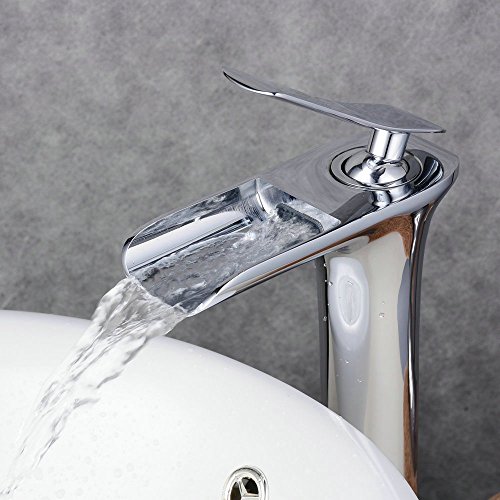 Beelee Rubinetto Alta a Cascata per lavabo,Rubinetto Maniglia Singola,Rubinetto Miscelatore monocomando per lavabo, Cromo Lucido