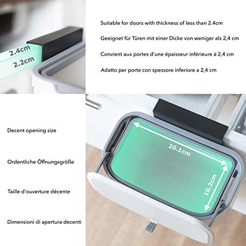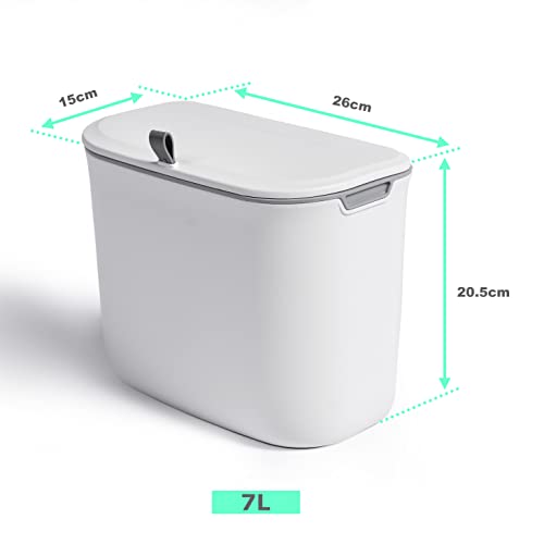 BEELINEX Pattumiera da Appendere Cucina con Coperchio Scorrevole, Pattumiera Appendibile per Rifiuti Organici, Pattumiera Sospesa Sottolavello e Bagno, Bianco, 7L
