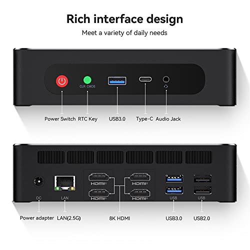 【Connettività di rete wireless superiore】 Questo mini computer è dotato di WiFi 6E (802.11ax) con una velocità di trasmissione fino a 1,2 Gbps, bassa latenza e velocità superiore. Dispone inoltre di porte Ethernet RJ45 con velocità di trasmissione fino a 2,5 Gbps. L'adattatore wireless Bluetooth 5.2 aiuta notevolmente a collegare i dispositivi Bluetooth e a tenere in ordine la scrivania.