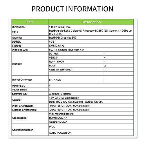 [DDR3L 4 GB + EMMC 64 GB] Memoria RAM da 4 GB, è molto adatta per le esigenze di base dell'ufficio e le operazioni remote. Lo spazio di archiviazione 64G ti fa sentire libero di goderti tutti i tuoi film, programmi sportivi e programmi di intrattenimento preferiti. Supporta l'espansione del disco rigido SATA da 2,5" fino a 2 TB per soddisfare le tue esigenze di archiviazione quotidiane.
