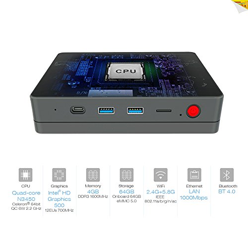 Beelink S1 Mini PC 4GB / 64GB Intel Apollo Lake Celeron N3450 Processore VGA/HDMI Output Dual Screen Display Windows 10 Desktop PC (Type-C/SATA/ BT4.0/Dual-Band WiFi/USB 3.0)