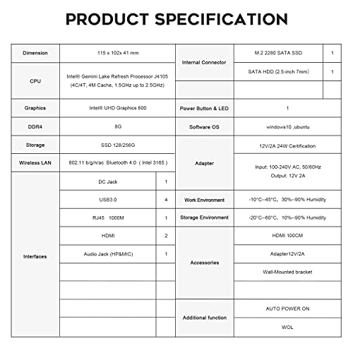 Beelink GK35 Pro Mini PC Intel Celeron J4105 2.5GHz 8GB DDR4 RAM / 128GB SSD Windows 11 Dual WIFI, 4K Desktop mini computer