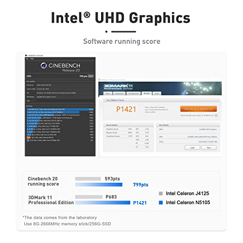 Processore Aggiornato: Multimediale mini computer è dotato dell'undicesima generazione Intel Celeron N5105. 4 core e 4 thread, buffer 4M, frequenza principale 2,0 GHz, frequenza turbo 2,9 GHz. Rispetto al core della generazione precedente, è notevolmente migliorato, aiutandoti per vivere una nuova efficiente esperienza d'ufficio.