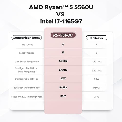 Beelink Mini PC W11 Pro, AMD Ryzen 5 5560U (6C/12T, fino a 4,0 GHz), Mini Computer 16GB DDR4 RAM/500GB M.2 2280 NVME SSD Supporto 4K@60Hz/WiFi 6/BT5.2/HDMI/Type-C