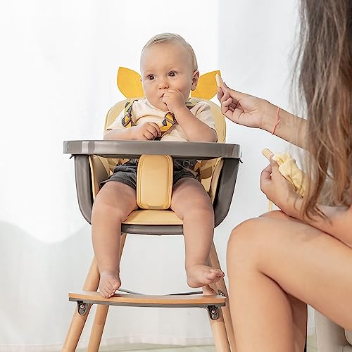 Beeloom - Seggiolone trasformabile GIRAFFE THRONE per bambini e neonati, giallo con altezza regolabile e vassoio rimovibile, sicuro e robusto a partire dai 6 mesi