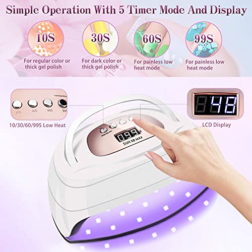 BEENLE Lampada UV LED Unghie da 220W, Professionale 57 LEDS Luce per Smalto Asciuga Fornetto Unghie Gel Lampada UV per Manicure/Pedicure, con 4 Timers, Display LCD (Guanti Anti-UV Offerti)