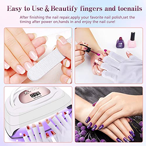 【Chiodo ad alta potenza e polimerizzazione rapida】La lampada per unghie in gel BEENLE UV LED adotta la tecnologia avanzata a doppia luce per simulare la luce solare UV, L'elevata potenza di 220 W polimerizza lo smalto per unghie più velocemente. 57 perle di luci UV + LED sono distribuite uniformemente sulla parte superiore e sui lati della lampada. Le tue unghie sono polimerizzate in modo uniforme a 180 gradi. Il pacchetto viene fornito con guanti anti-UV senza dita per proteggere le mani.