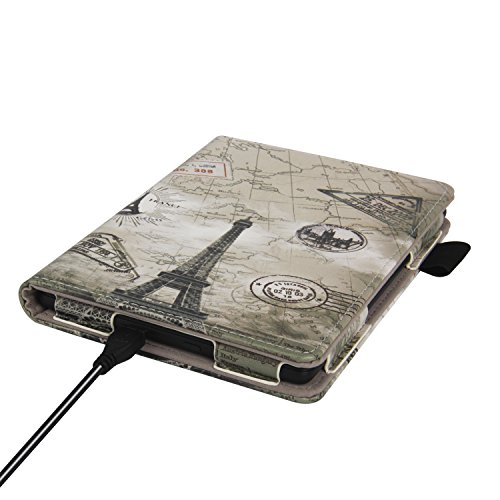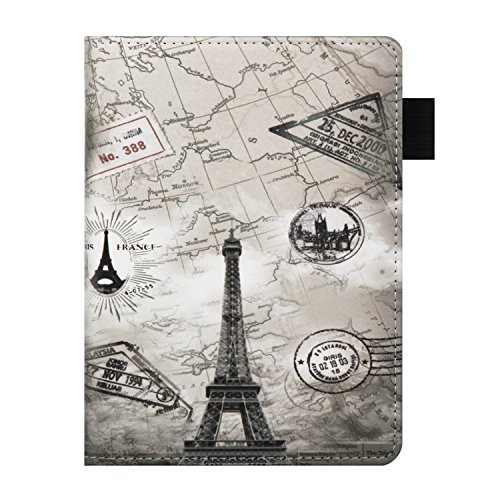 BeePole Kindle 8ª generazione (2016) Custodia - Custodia protettiva per Nuovo E-reader Kindle (schermo touch da 6" anti riflesso, 8ª generazione - modello 2016) in Pelle Sintetica, con cinturino, e sonno auto / sveglia la funzione,Torre Eiffel