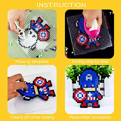 【Molteplici Applicazioni】- Gioco perline da stirare Possibile utilizzarli per fare ornamenti per capelli, bigiotteria, giocattoli dei cartoni animati, piccoli ciondoli e progetti artigianali, ecc. Un buono regalo per i vostri figli e le famiglie nei giorni festivi come compleanni, Natale, ecc.