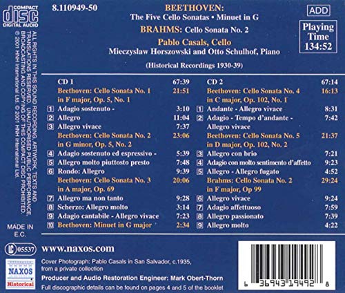 BEETHOVEN / BRAHMS: Cello Sonatas (Casals) (1930-1939)