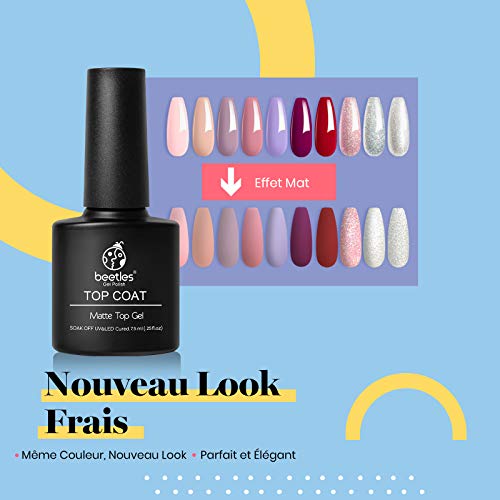 Smalto semipermanente Beetles: aiutano la tua manicure a rimanere fresca e ad apparire più giovane Lunga durata di oltre 21 giorni. No Wipe Top Coat Mat dona una finitura opaca allo smalto gel uv di qualità del salone e lo protegge.
