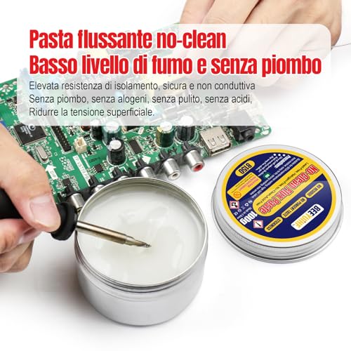 flussanti per saldatura Peso:Pasta saldante alla colofonia, realizzata con pasta saldante senza acidi, senza piombo e senza pulizia, non facile da scaricare. Pasta flussante per BGA, facile da stagnare, meno residui.