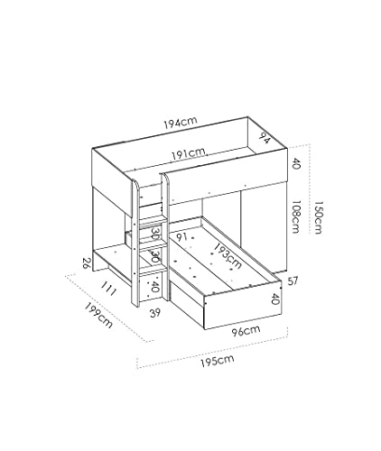 BEFARA-DK Letto A Castello MODULARE Duo - Grafite/Naturale