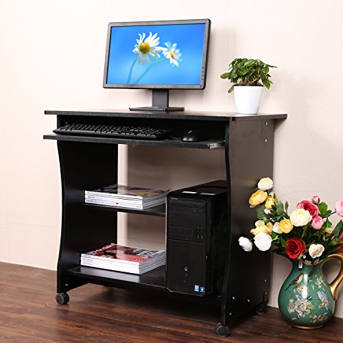 Befied Scrivania Ufficio Porta PC Scrivania per Computer Computer Desk in Legno 4 ruote Con Ripiani di Tastiera Scorrevole Tavolo dell' computer 80 x 40 x 78,5 cm nero (Nero)