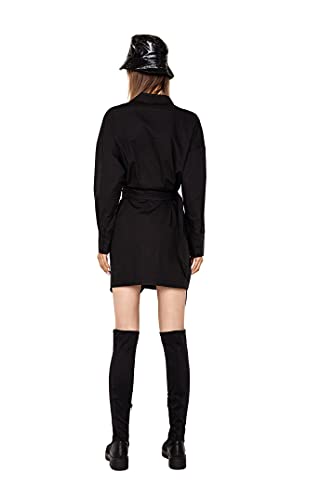 Befree Donna Abito Camicia Asimmetrico a Portafoglio con Lacci Larghi Nero XS