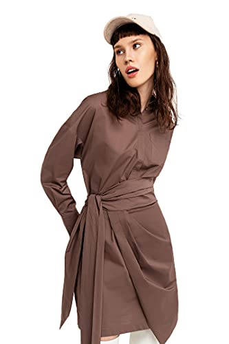 Befree Donna Abito Camicia Asimmetrico a Portafoglio con Lacci Larghi Marrone M