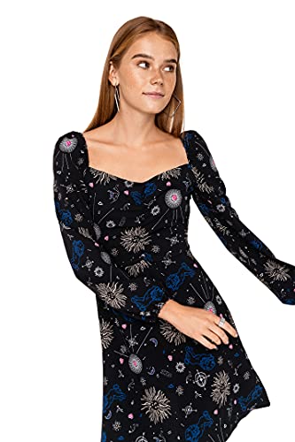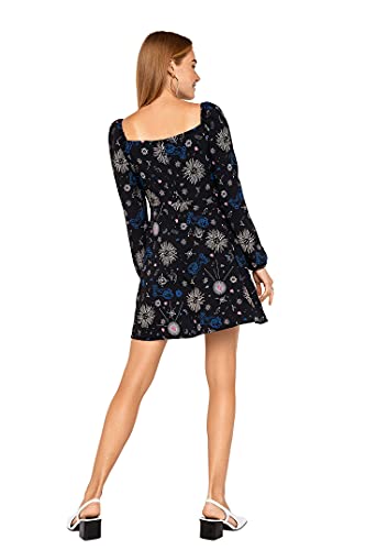 Befree Donna Abito Corto con Scollo a Cuore e Maniche a Sbuffo Nero S