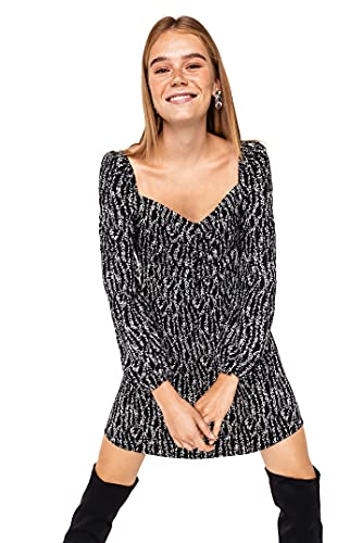 Befree Donna Abito Corto con Scollo a Cuore e Maniche a Sbuffo Nero M