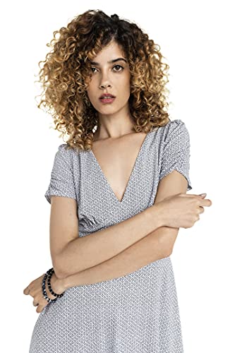 Befree Donna Abito Corto con Scollo a V e Maniche Increspate Bianco L