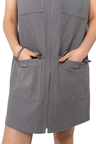 Befree Donna Abito Smanicato Dritto in Cotone con Cerniera Grigio M