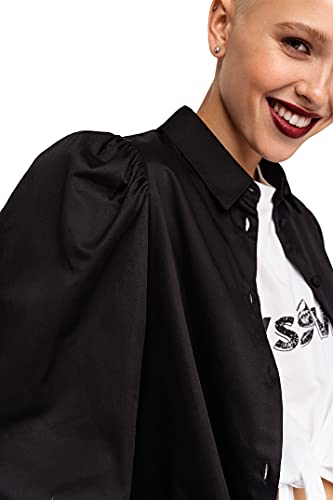 Befree Donna Camicetta in Cotone con Colletto Classico e Maniche Palloncino Nero XS