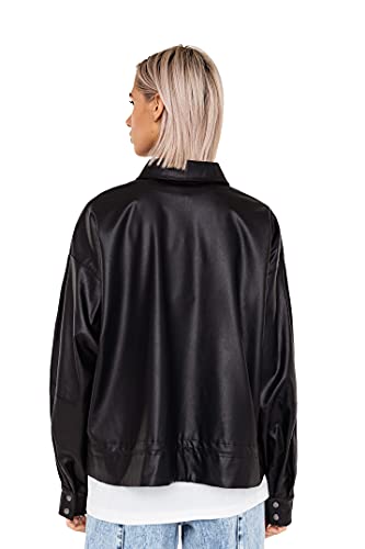 Befree Donna Camicia Oversize in Pelle Sintetica con Bottoni a Pressione Grigio L
