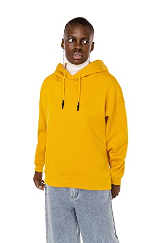 Befree Donna Felpa con Cappuccio Oversize in Cotone con Laccetti Giallo S