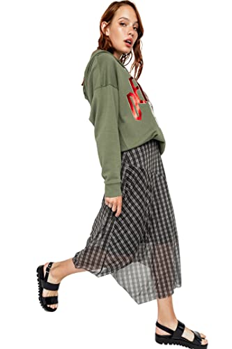 Maxi gonna a vita alta elastica. Stampa floreale, stampa a quadretti.