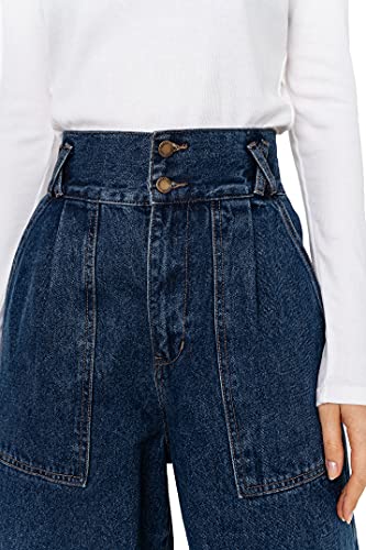 Befree Donna Jeans Dritti con Gamba Larga e Tasche Profonde Blu L
