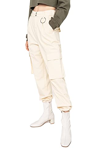 Befree Donna Pantaloni Cargo in Cotone con Anello Decorativo Avorio XS