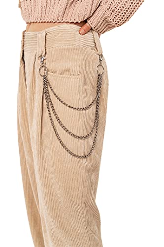 Pantaloni comodi in velluto a coste con gamba larga dritta e vita alta. Ampi passanti per la cintura, chiusura a zip con bottone, due tasche profonde.