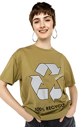 Befree Donna T-Shirt in Cotone Oversize сon Stampa Riflettente Verde S