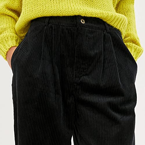 PANTALONI IN VELLUTO A COSTE CON VESTIBILITÀ COMODA: Caratterizzati da vestibilità comoda e leggermente affusolati sulle gambe lunghe. Vita alta alla moda, ideale per abbinarli ad un'ampia gamma di maglie eleganti o casual.