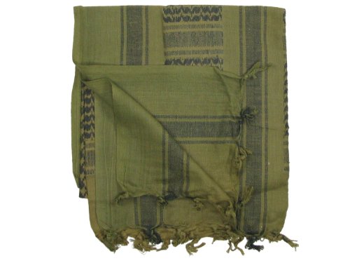Begadi - Kefiah con frange, 100% cotone, ca. 110 x 110 cm, colore verde oliva/nero
