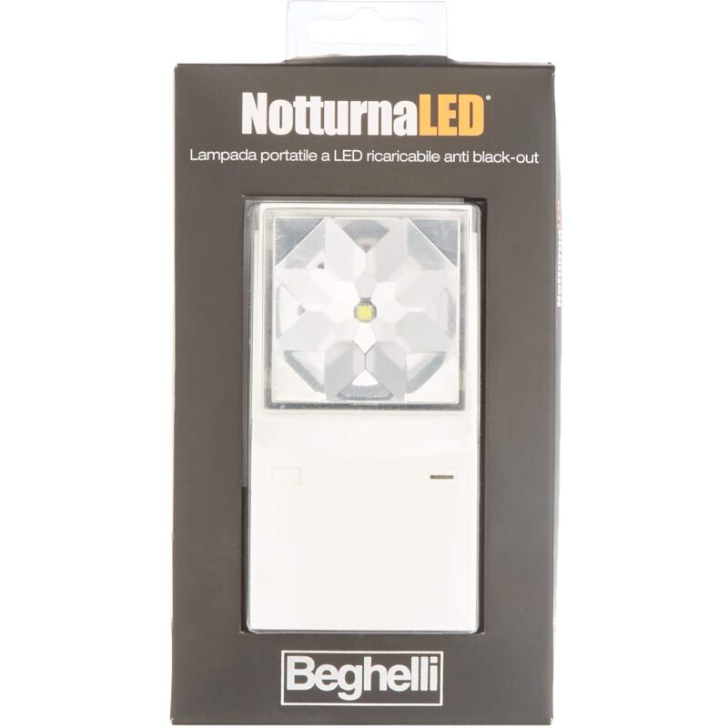 Descrizione Descrizione Lampade emergenza Beghelli, portatile ricaricabile a LED, batteria AAA 1,2 V, nimh 0,55 Ah, spina a scomparsa, accensione automatica in caso di black-out, autonomia massimo 3h. Contenuto della confezione Lampada Led