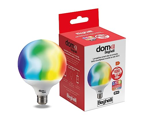 Beghelli Dom Lampadina LED Alexa Smart GLOBO E27 14W RGB-CCT WiFi-Lampada Compatible con App, Lampadine Accessori Domotica di Facile Installazione, Regolazione di Colori a Luce Calda e Luce Fredda