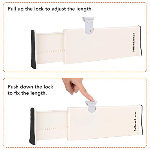 BeHomeArmor - Divisori per cassetti, espandibili, con bordi in schiuma antigraffio, 28 a 44 cm, separatori regolabili per organizzare cassetti, 2 pezzi