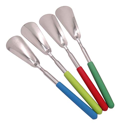 Behone 4 pezzi Calzascarpe retrattile(26.5-75 cm), Calzascarpe Lungo di Metallo, Acciaio Inox Calzascarpe di metallo per uomini, donne, bambini, anziani(Colore casuale)