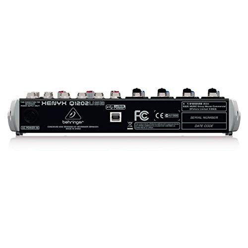 Behringer XENYX Q1202USB Mixer Premium a 12 ingressi a 2 bus con preamplificatori microfonici e compressori XENYX, equalizzatore britannico e interfaccia USB/audio