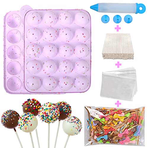 Set completo per fai da te di cake pop: la confezione contiene 1 stampo in silicone per cake pop, 100 bastoncini di carta, 100 fascette colorate a spirale, 100 sacchetti per torte, 1 penna decorativa. Se avete domande c