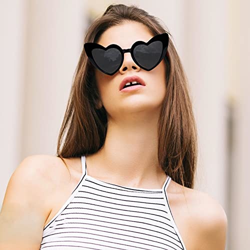 Beifon Occhiali da Sole Donna Occhiali Cuore Vintage Unisex Occhiali da Sole da Hippie Accessori Occhiali da Sole per Compleanni, Viaggio,Laurea, Matrimonio o Bomboniere. (Nero)