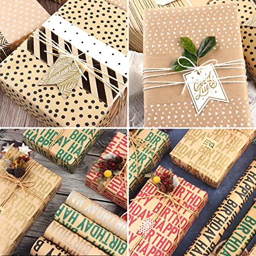 BeiHeng Carta da Regalo Vintage, 12 Foglio di Carta da Regalo Kraft Carta da Pacchi Kraft Riciclata Carta da Pacchi Piegati Carta per Confezioni Regalo per Imballaggio, Artigianato, 50 X 70CM