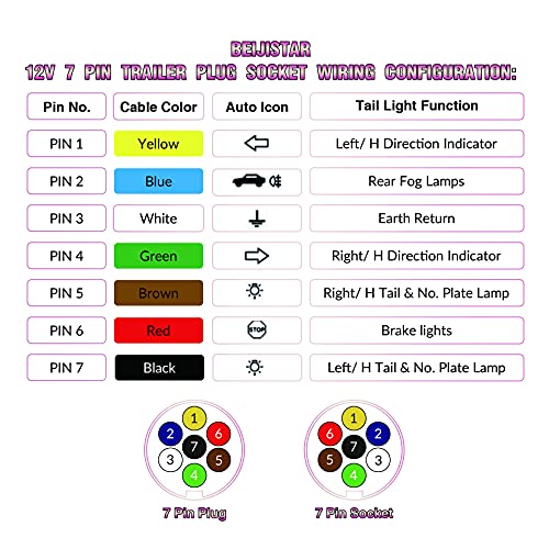 Design Impermeabile - Questa presa per rimorchio 7 poli è realizzata in plastica di alta qualità e perni in ottone, con un alloggiamento resistente e materiale impermeabile, adatto a tutte le condizioni atmosferiche e stradali, l'alloggiamento in plastica previene la ruggine o la corrosione.