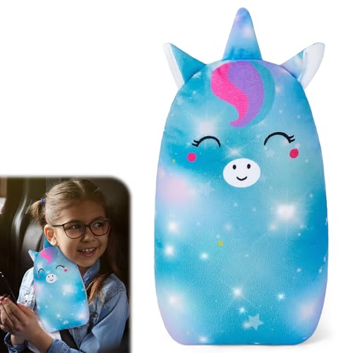 Beinou Cuscino per cinture di sicurezza per bambini, con motivo unicorno, morbido cuscino per spalla, per ragazze e ragazzi