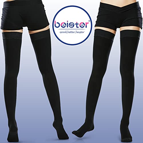 Beister Calze mediche chiuse a compressione per coscia, con fascia in silicone, per donne e uomini, rigide, 20-30 mmHg, supporto graduato per vene varicose, edema, volo (1 paio)