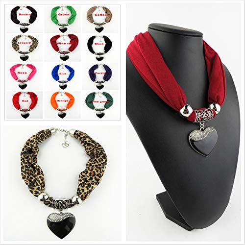 BEITABEITAkaitank Sciarpa da Donna in Stile Etnico con Ciondolo a Forma di Cuore Collana con Ciondolo in Pietra Naturale Sciarpa con Motivo Leopardato, Sciarpa da Donna, Viola Scuro